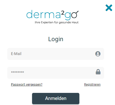 Nachdem Sie sich einmalig bei derma2go registriert haben, können Sie sich jederzeit in Ihrem Account einloggen.
