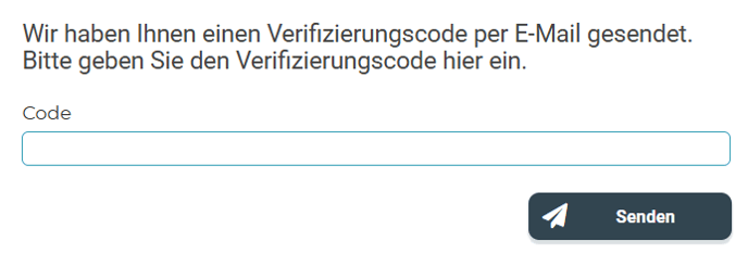Als Teil der 2-Faktor-Authentifizierung, wird Ihnen nun ein Bestätigungscode zugesendet, den Sie bitte ebenfalls in das dafür vorgesehene Feld eingeben. Klicken Sie anschließend auf "Senden".